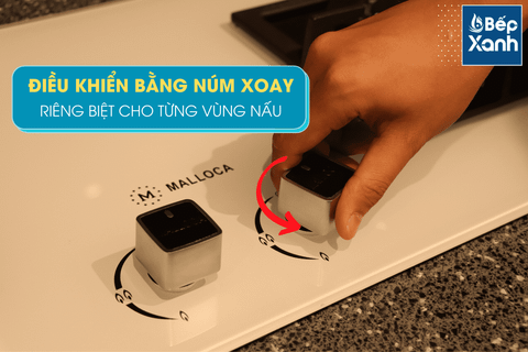 Núm xoay điều khiển riêng biệt cho 2 vùng nấu