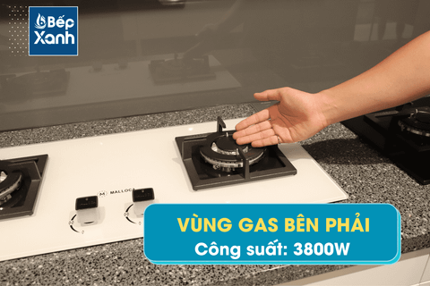Cả 2 vùng nấu gas đều có công suất ngang nhau, mỗi bên tối đa là 3800W. Công suất này làm bếp hoạt động tối đa, giúp thức ăn bếp trong nồi chảo nhanh chín hơn.