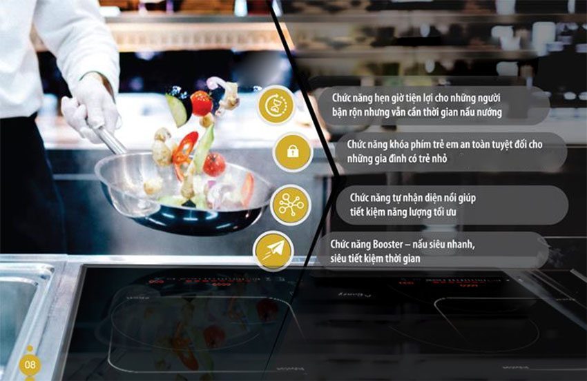 Bên cạnh đó, Bếp từ âm kính CZ-38I có chức năng tự nhận diện nồi nấu, vùng nấu đảm bảo tiết kiệm điện năng khi sử dụng và kết hợp với chức năng Booster giúp món ăn chín nhanh chóng, tiết kiệm thời gian nhưng vẫn giữ được hương vị thơm ngon và bảo toàn dưỡng chất của món ăn.