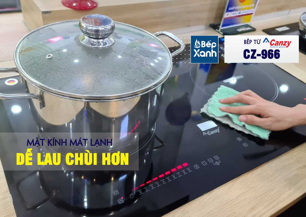 Dễ dàng lau chùi hiệu quả: Là bếp từ hiệu suất cao, nhưng bếp từ Canzy CZ-966 dễ dàng lau chùi ngay cả lúc đang nấu. Mặt bếp luôn mát lạnh, dễ lau chùi trong mọi trường hợp.