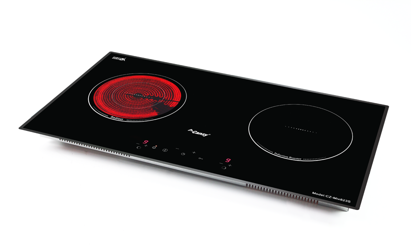 Bếp điện từ Canzy CZ-MIX823S gồm 2 vùng nấu, 1 vùng nấu từ có khả năng đun nấu siêu nhanh và tiết kiệm điện năng với công suất 1500W có thể đạt mức công suất tối đa Booster 2000W và 1 vùng nấu hồng ngoại sử dụng mâm nhiệt EGO 2 vòng nhiệt với vòng nấu nhỏ bên bếp hồng ngoại có công suất 800W và vòng nấu lớn của bếp hồng ngoại có công suất 1900W.