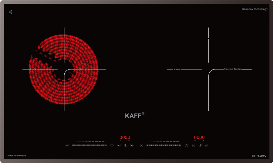 Bếp điện từ 2 vùng nấu Kaff KF FL989IC là dòng sản phẩm nhập khẩu tại Đức, với 2 vùng nấu rộng rãi giúp tăng tối đa khả năng nấu nướng cho các gia đình đông người hoặc bận rộn, muốn nấu nhiều món ăn cùng lúc