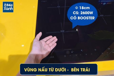 | Công suất vùng nấu | 2.6kW + 1.8kW + 3kW (Ø 180) + (Ø 160) + ( Ø 280) |