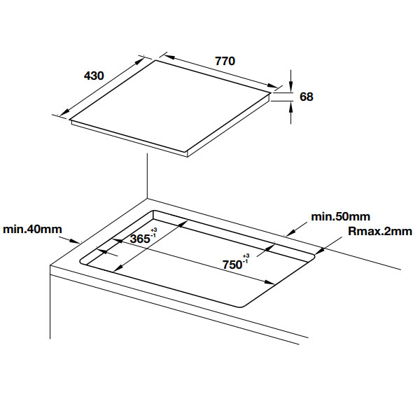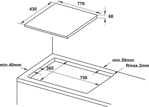 » Kích thước lắp đặt: 750R x 365S mm