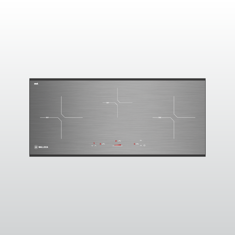 Bếp từ Malloca MH-03IS có thiết kế 3 vùng nấu, bề mặt được làm xước dạng Metalic dễ dàng lau chùi, không gây trơn trượt trong quá trình nấu nướng.