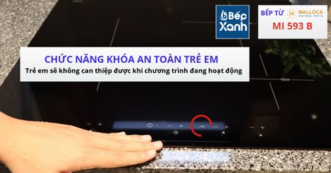 Yên tâm hơn với chức năng khóa an toàn trẻ em: Bếp được trang bị khóa an toàn cho trẻ em độc lập dành riêng cho từng vùng nấu. Chức năng này giúp ngăn ngừa trẻ nhỏ có vô tình chạm tay vào bếp thì cũng không điều khiển được. Khi bạn muốn điều khiển lại bếp thì chỉ việc mở khóa trên bảng điều khiển.