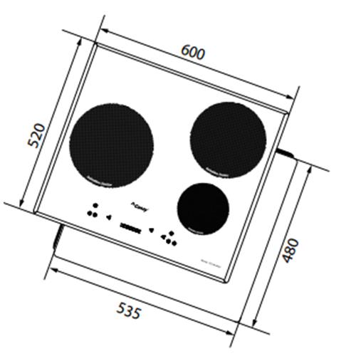 Đây là mặt kính chuyên dụng dành cho bếp điện từ, là một loại kính có chất lượng cao, rất cứng, bền và có nhiều đặc điểm nổi trội như: khả năng chịu nhiệt, khả năng chống trầy xước và chống va đập .... Mặt kính gồm các thấu kính hội tụ, truyền nhiệt từ bếp lên đáy nồi theo phương thẳng đứng, không thất thoát nhiệt ra môi trường. Mặt kính màu xám liền nguyên khối, an toàn, thẩm mỹ và tiện trong việc vệ sinh, lau chùi.