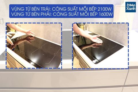 | Công suất vùng nấu | 2 x 2.1kW ( Booster 3kW) – 2 x 1.6kW ( Booster 1.85kW) |