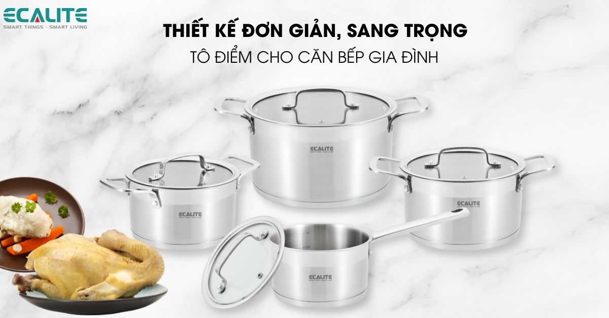 Bộ nồi inox 304 cao cấp Ecalite ERW-SA4080 được bảo hành chính hãng 12 tháng.