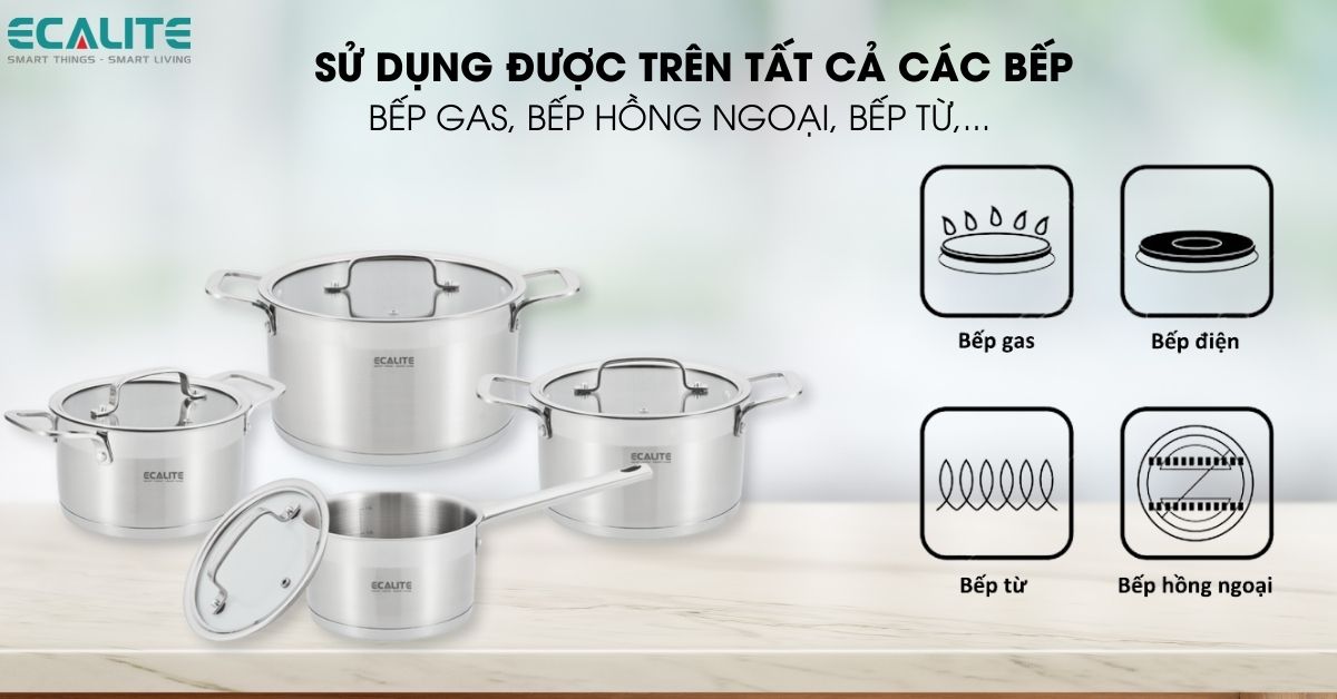 Đáy nồi 3 lớp sử dụng trên tất cả các loại bếp.