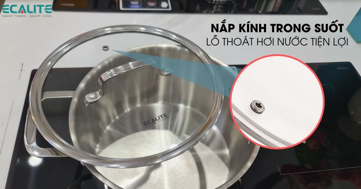 Bộ nồi Ecalite SA4080 là một trong những đồ gia dụngmà gia đình nào cũng nên sở hữu. Bộ nồi 8 món ERW-SA4080 được trang bị nắp nồi bằng kính trong suốt giúp bạn dễ dàng quan sát bên trong khi đang nấu ăn mà không cần phải mở nắp ra nhiều lần để xem. Trên mỗi nắp đều có lỗ thoát hơi nước rất tiện lợi, chống tràn khi sôi.