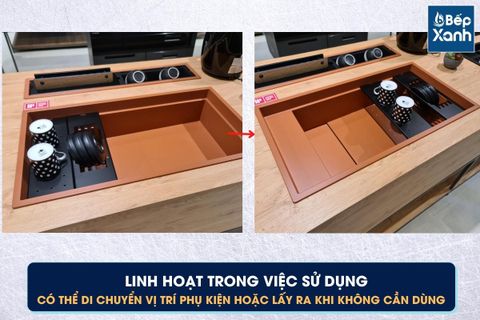 | Tiện ích nổi bật | 4 phụ kiện đi kèm: Khay đựng thớt; Rổ nhựa; Khay úp chén; Khay đựng dĩa |