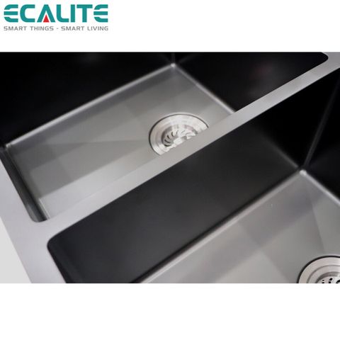 Chậu rửa chén 2 ngăn rửa được hãng Ecalite thiết kế phù hợp với gia đình có nhiều thành viên. Với kích thước D800 x R460 mm, khách hàng có thể thoải mái chứa nhiều vật dụng cùng lúc hoặc rửa xoong, chảo,... có kích thước lớn.
