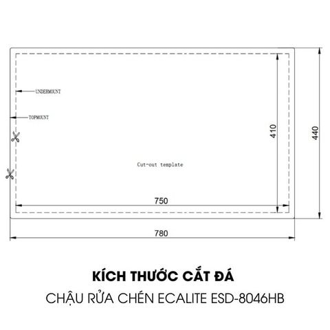 | Kích thước lỗ đá | Lắp nổi: D780 x D440 mm/ Lắp âm: D750 x R410 mm |