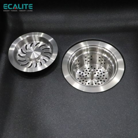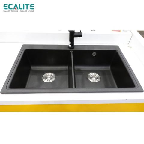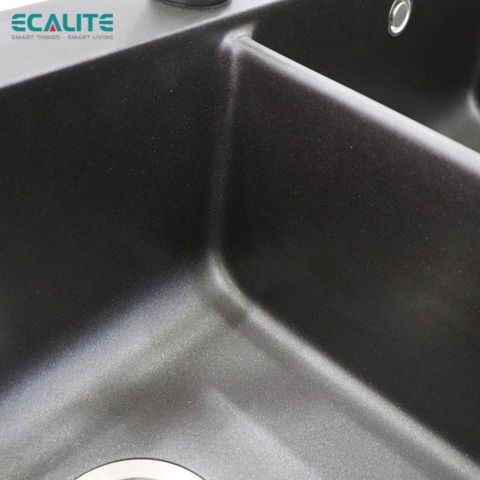 Chậu rửa chén Ecalitesở hữu thiết kế 2 ngăn rửa lớn vô cùng rộng rãi, phù hợp lắp nổi làm tôn lên vẻ sang trọng và hiện đại cho căn bếp. Điểm thu hút của sản phẩm này nhờ vào kiểu dáng bo tròn 4 góc giúp chậu dễ dàng lau chùi vệ sinh, tăng tính thẩm mỹ cho không gian bếp.