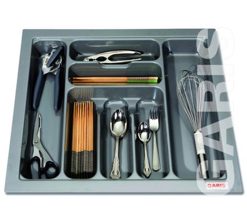 Với dao, thìa, dĩa… ăn hằng ngày chúng ta thường cất giữ chúng ở các giá đựng dành riêng cho các vật đúng đó. Còn đối với những vật dụng ít khi được sử dụng thì sẽ được cất trong các ngăn kéo, nhưng chúng ta không thể để chúng lẫn lộn vào nhau trong cùng một ngăn kéo được, mà sử dụng mỗi sản phẩm vào một ngăn kéo thì rất lãng phí, giải pháp đặt ra ở đây chính là sử dụng phụ kiện tủ bếp khay đựng dao, dĩa và dụng cụ nhà bếp.