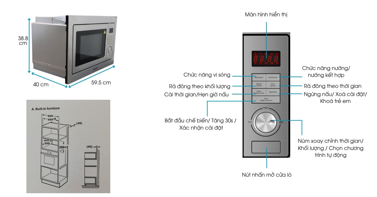 Thiết kế lắp âm tủ với dung tích 25L đáp ứng tốt cho nhu cầu sử dụng của gia đình 3-4 thành viên