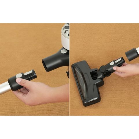 - Máy có thiết kế 2 trong 1, người dùng có thể tháo rời thân máy và sử dụng như máy hút bụi cầm tay, tiện lợi khi vệ sinh khu vực trên cao, ghế sofa, giường đệm,…