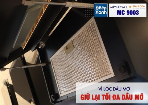 Khả năng khử mùi hiệu quả: Ngoài khử mùi bằng ống dẫn được lắp đặt thoát ra ngoài, máy hút mùi MC 9003 còn được trang bị than hoạt tính ở bên trong. Đây được xem là một ứng dụng trong bộ phận lọc mùi dành cho những thiết bị lọc mùi cao cấp. Than này có tác dụng khủ mùi triệt để, làm dịu đi mùi hôi ngay lập tức và giúp cho không gian bếp thông thoáng hơn trong quá trình nấu nướng.