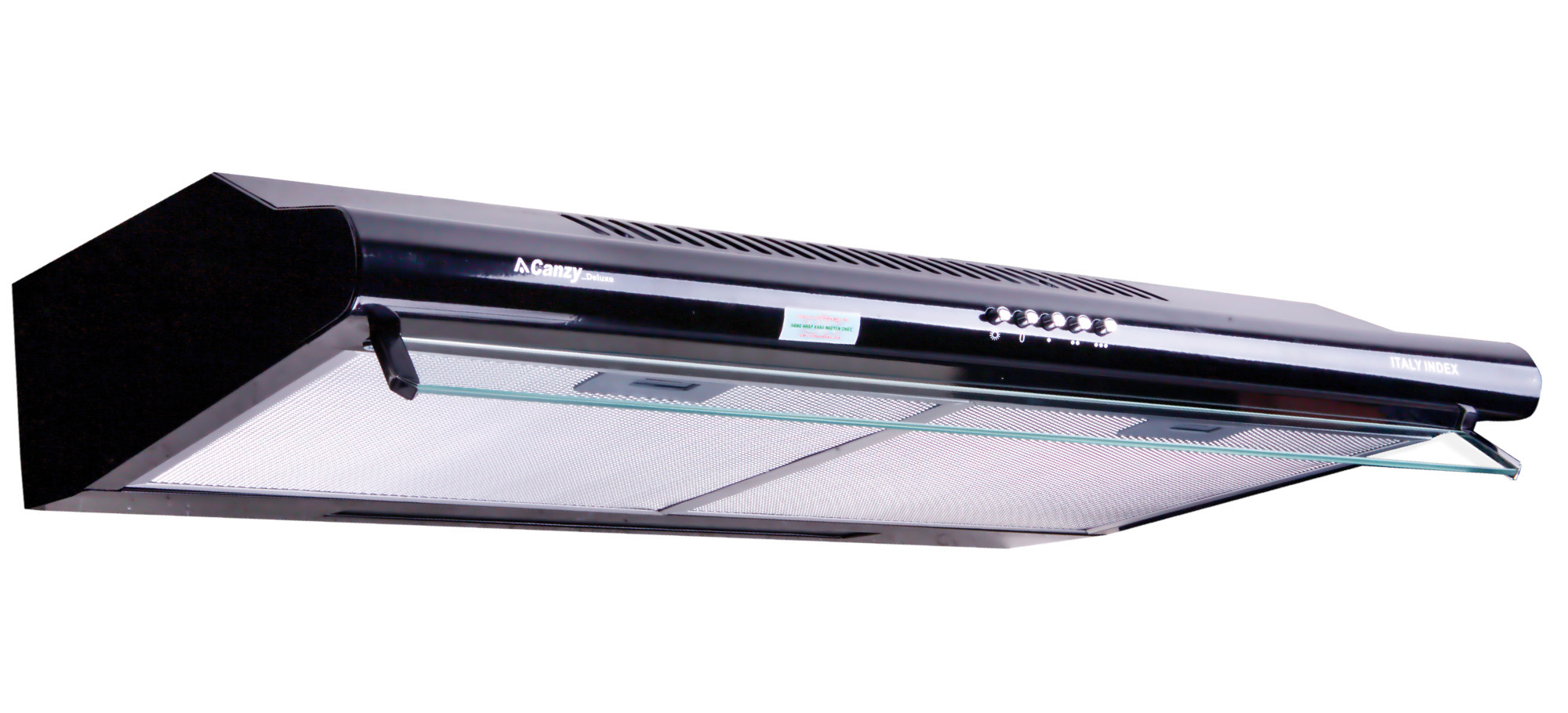 | Thông số kỹ thuật | Đèn Halogen siêu sáng tiết kiệm điện Điều khiển phím bấm 3 cấp độ Lưới lọc mỡ bằng nhôm 3 lớp Chế độ hút đẩy ra ngoài hoặc khử mùi bằng than hoạt tính |