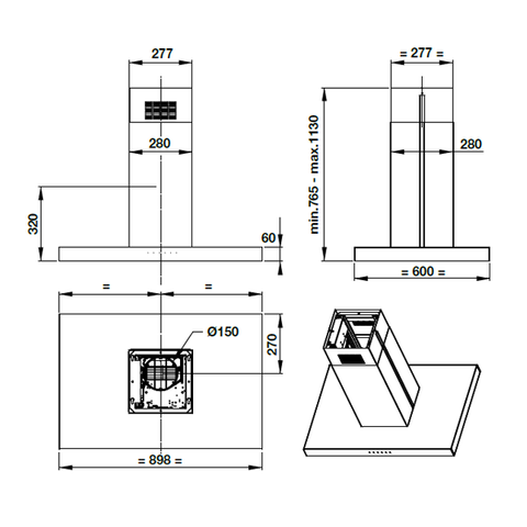 Chiều ngang 89.8 cm phù hợp để bố trí trong các căn bếp rộng trong biệt thự, chung cư, căn hộ,... Bề mặt máy hút mùi phủ chất liệu thép không gỉ bóng sáng nổi bật, hạn chế rỉ sét, dễ làm sạch khi bám bẩn.