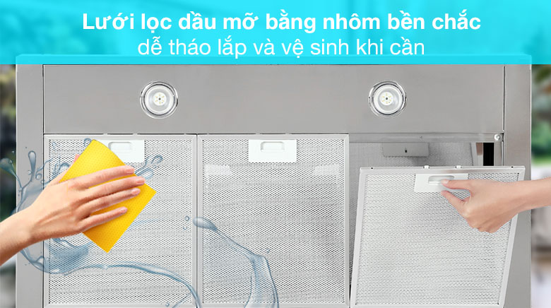 Bộ lọc có thể dễ dàng tháo rời và vệ sinh nhanh chóng. Người dùng nên vệ sinh bộ phận này 1 - 2 lần/tuần tùy vào tần suất nấu sử dụng máy hút mùi bếp.