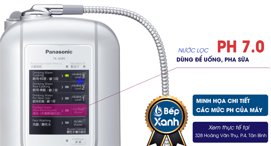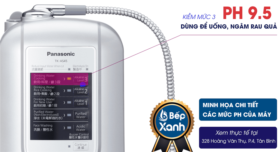 Máy lọc nước Panasonic TK-AS45 là 1 trong 3 dòng máy điện giải bán chính thức tại Việt Nam, bên cạnh dòng Panasonic TK-AS66, Panasonic TK-AB50