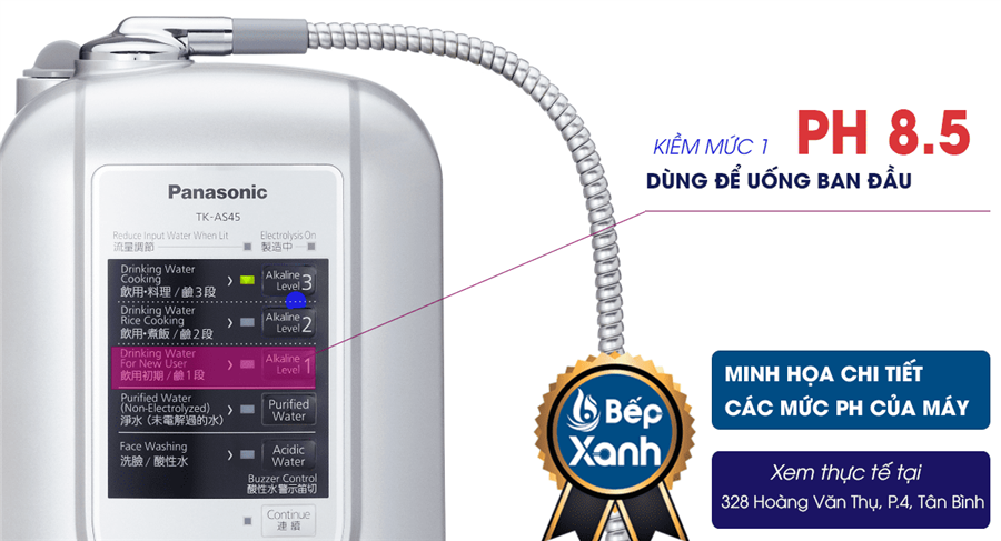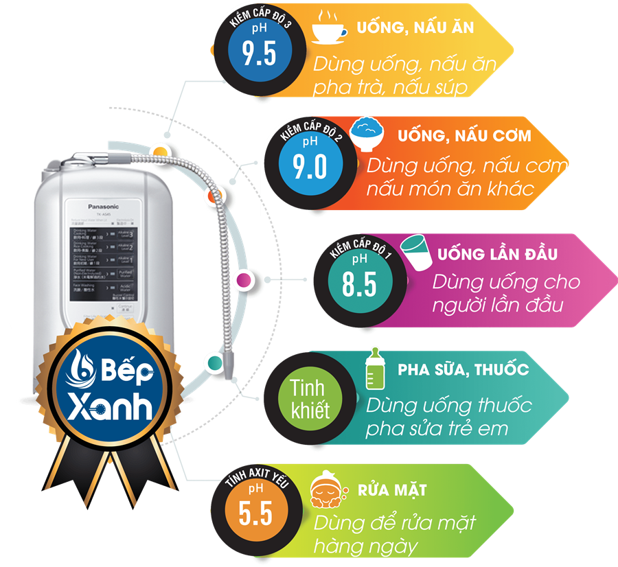 Máy điện giải Panasonic TK-AS45 sẽ cho ra 5 loại nước quý, giúp gia đình bạn an tâm sử dụng nguồn nước an toàn và hiệu quả