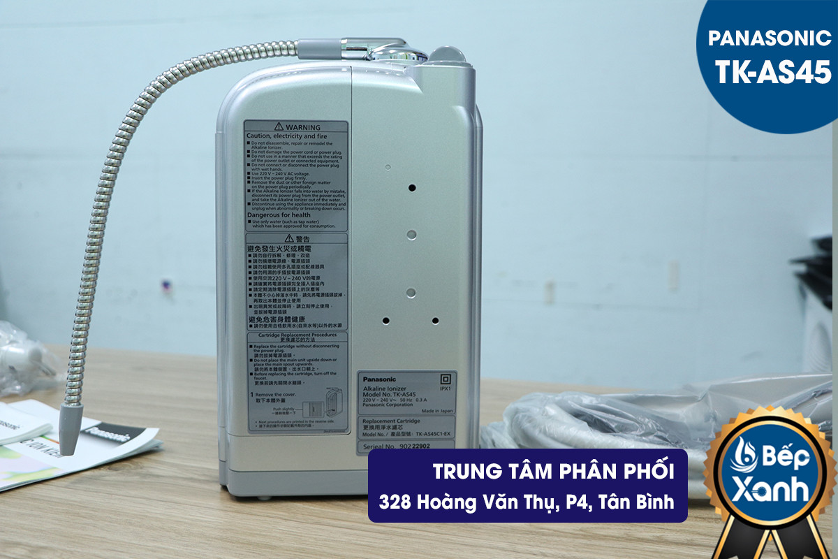 Panasonic TK-AS45 thế hệ mới bán tại Việt Nam được nhập khẩu từ Nhật Bản. Máy được thiết kế đặt trên chậu rửa chén, hoặc để bàn, sang trọng và tiện nghi.