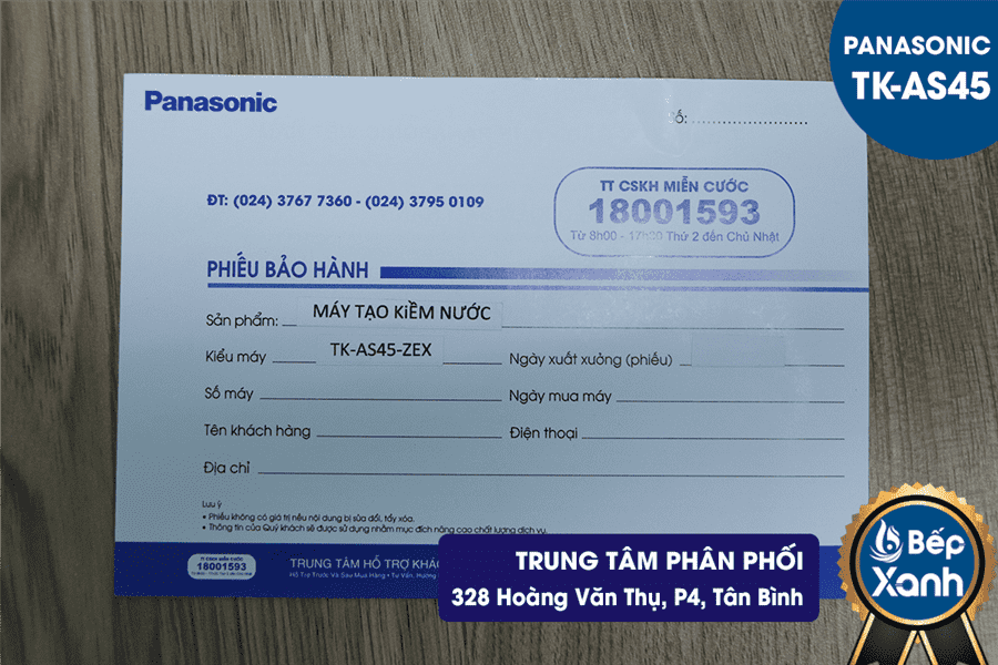 Phiếu bảo hành chính hãng do Panasonic Việt Nam phát hành