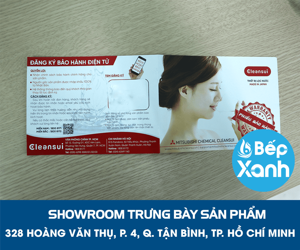 Bếp XANH tự hào là đại lý ủy quyền của máy lọc nước Cleansui. Showroom trưng bày máy lọc nước Cleansui EU101: 328 Hoàng Văn Thụ, Phường 4, Quận Tân Bình, TP. Hồ Chí Minh