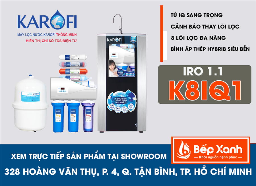 Máy lọc nước Karofi IRO 1.1 - K8IQ1 đem đến cho gia đình bạn nguồn nước sạch, an toàn, giàu vi khoáng và diệt khuẩn hoàn toàn nhờ tích hợp lõi Nano Silver (Lõi số 8) diệt khuẩn