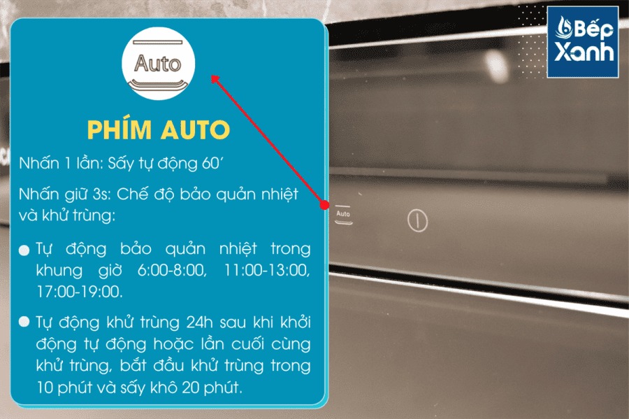 Gồm 2 chế độ: sấy tự động; bảo quản nhiệt tự động và khử trùng.