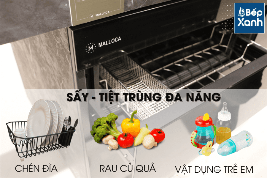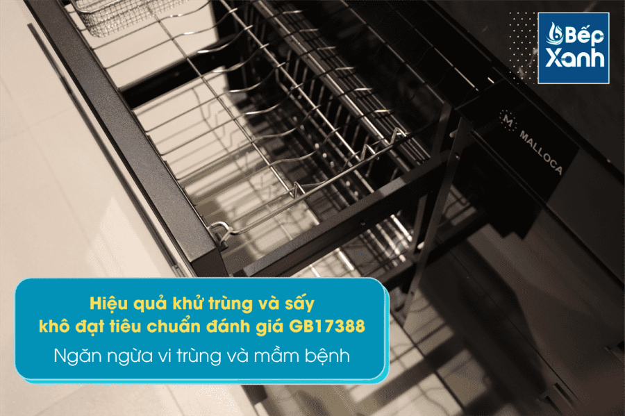 Không chỉ là sản phẩm có chức năng sấy khô bát đĩa thông thường, Malloca MSC-1005 còn sở hữu tính năng khử độc, khử trùng hiệu quả cho rau quả. Máy dùng UV sử dụng PTC để khử trùng và sấy khô (ngăn ngừa vi trùng và mầm bệnh), hiệu quả đạt đến tiêu chuẩn hai sao của tiêu chuẩn đánh giá GB17388.