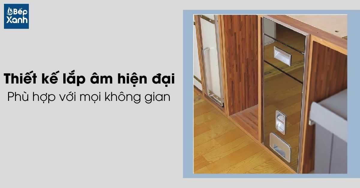 Thùng gạo âm tủ Eurogold B302 có thiết kế bề mặt gương sáng bóng giúp tô điểm thêm cho không gian bếp của gia đình. Kiểu dáng lắp âm tủ tiết kiện diện tích và kết hợp ray giảm chấn bắt dưới mặt tủ giúp làm giảm tiếng ồn khi kéo ra. Nhờ vậy, bạn chỉ cần kéo nhẹ là đã đưa toàn bộ thùng gạo ra phía ngoài một cách dễ dàng. Từ đó, người dùng có thể dễ dàng quan sát và lấy gạo thuận tiện hơn.