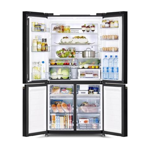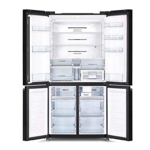 - Kiểu dáng: thuộc dòng tủ lạnh Multi Door trang bị 4 cánh cửa với chất liệu mặt kính sáng bóng. Thiết kế phẳng kết hợp cùng tông màu xám thanh lịch mang đến vẻ ngoài sang trọng, thời thượng từ mọi góc nhìn cho sản phẩm và không gian nội thất của gia đình.
