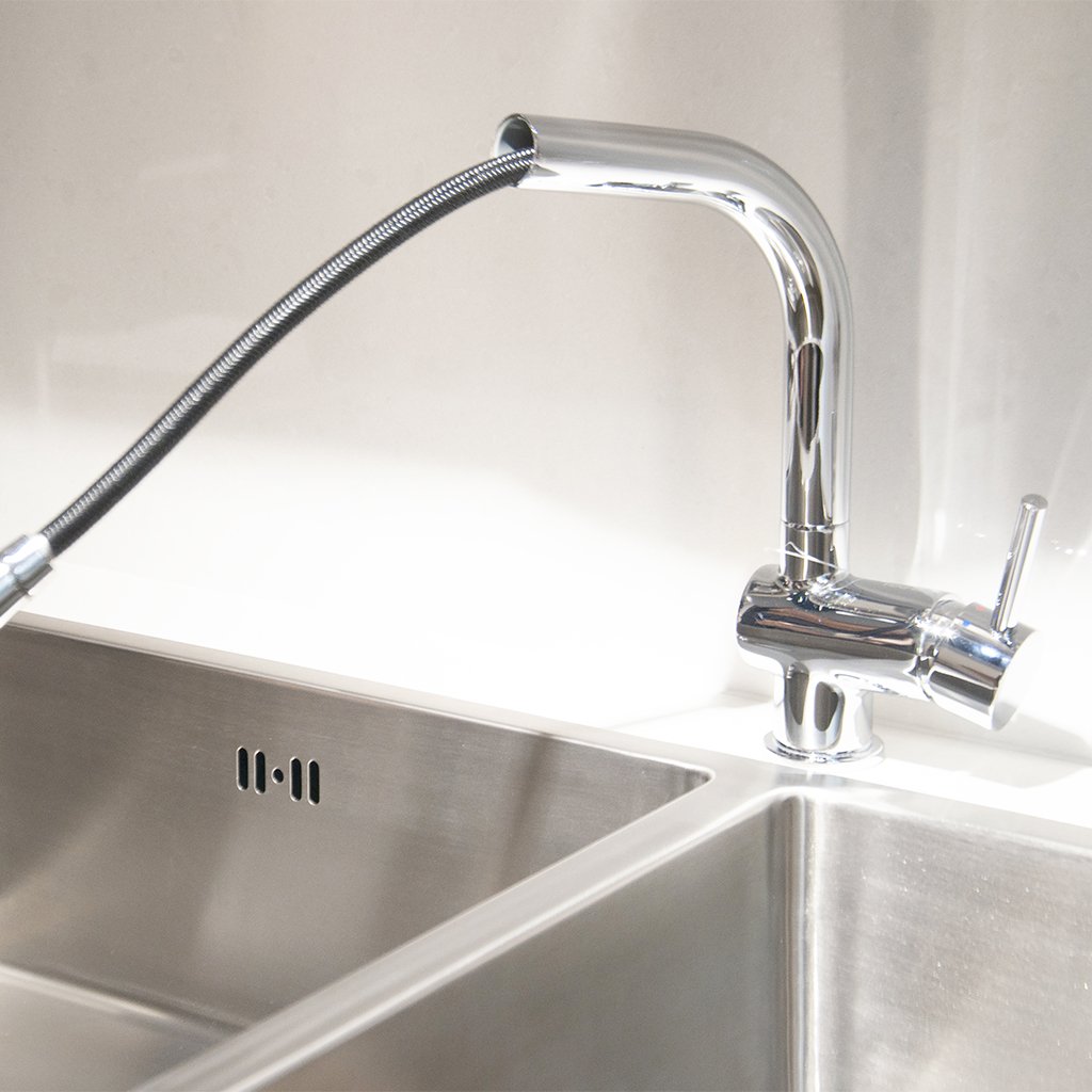 + Vòi dạng cổ rút dễ dang kéo dài để vệ sinh chậu rửa