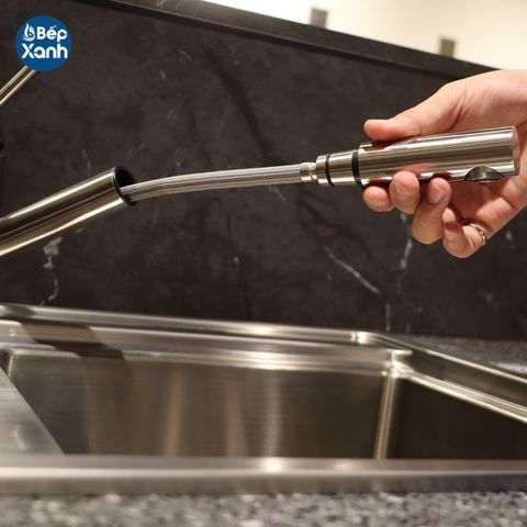 Đầu vòi có thể kéo dãn theo nhiều hướng: Thiết kế dây rút nên đầu vòi có thể kéo rút theo nhiều hướng khác nhau. Đầu vòi linh hoạt có thể sử dụng lấy nước dễ dàng và tiện lợi hơn, có thể xoay được xung quanh trục bằng khớp khuỷu linh động.