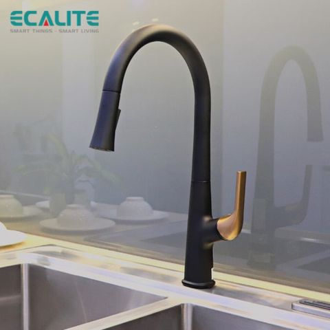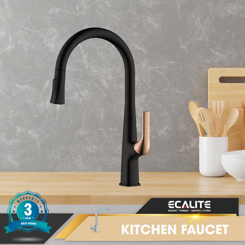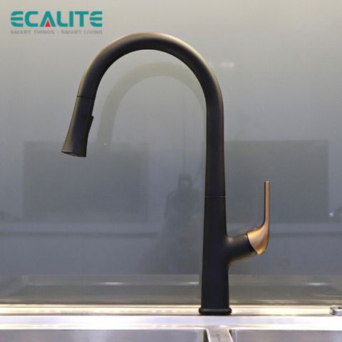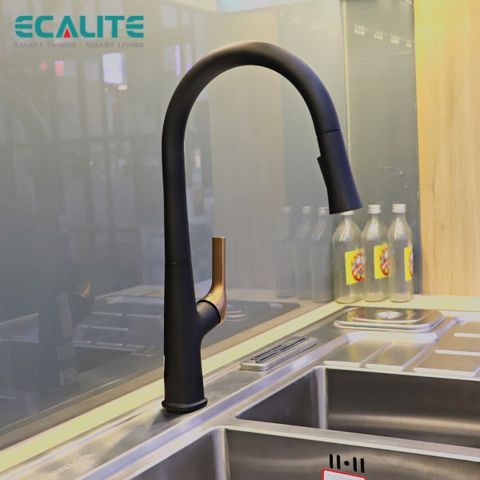 Bạn cần một chiếc vòi rửa chén màu đen để làm nổi bật không gian bếp, hay để phối hài hòa với chậu đá đen hoặc chậu inox đen? Ecalite giới thiệu đến bạn mẫu vòi đang rất được nhiều khách hàng ưa chuộng: Ecalite EF-K569BR, là sự kết hợp giữa vòi đen cổ ngỗng, có dây dút tiện lợi kèm tay cầm mạ đồng cực cá tính, cực hài hòa.