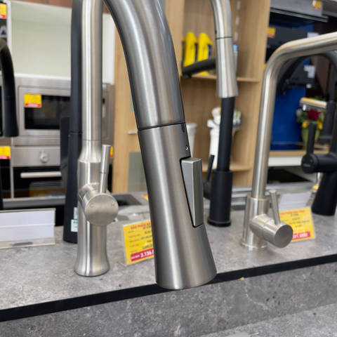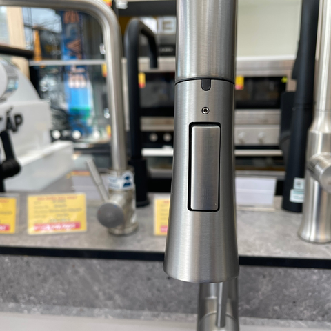 Ở phần đầu vòi rửa chén dây rút Ecalite EF-K149G có trang bị nút bấm để chuyển đổi tia nước xả ra, bao gồm tia chụm và tia xoè (tia sen). Tuỳ vào nhu cầu sử dụng, nút bấm sẽ giúp bạn chuyển qua lại giữa 2 tia nước rất tiện lợi, tăng hiệu quả sử dụng và tiết kiệm nước hơn.