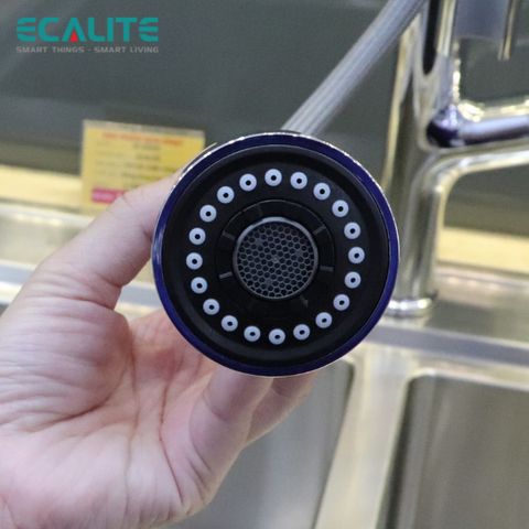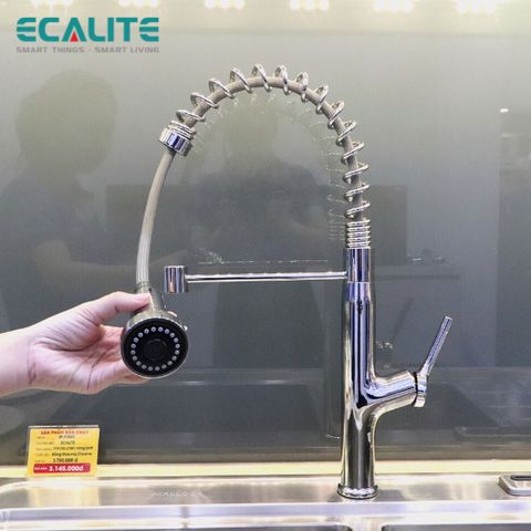 Vòi rửa chén của hãng Ecalite được thiết kế đầu vòi có thể kéo ra/thu vào gọn gàng. Đầu vòi nhỏ gọn nên dễ cầm và có thể kéo ra một cách nhẹ nhàng giúp bạn có thể sử dụng vòi rửa với phạm vi rộng hơn, dễ dàng vệ sinh xung quanh khu vực chậu rửa nhà bếp cực kỳ tiện lợi. Đồng thời, thiết kế dây rút này cũng sẽ hạn chế tối đa tình trạng nước bắn ra xung quanh bồn rửa, hoặc bắn vào quần áo của người đứng rửa bát.