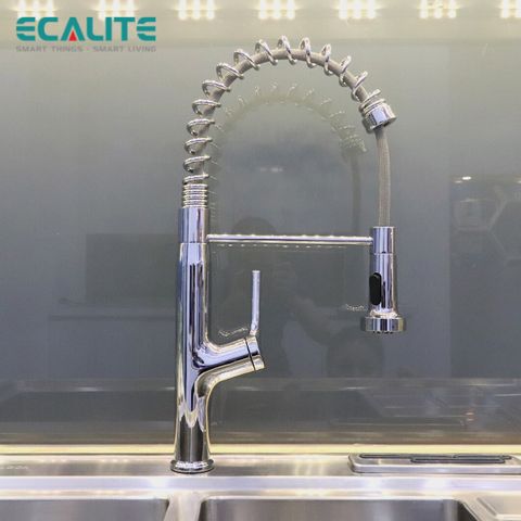 Vòi rửa chén nóng lạnh Ecalite EF-K541C có bề mặt sáng đẹp kết hợp với màu bạc thanh lịch, cùng với đó thân vòi được thiết kế theo hình dạng lò xo uốn cong tinh tế góp phần tô điểm cho bất kỳ căn bếp nào. Sản phẩm được tích hợp nhiều tính năng, thiết kế vòi có thể co rút, thân vòi xoay 360 độ linh hoạt mang đến trải nghiệm cực kỳ thoải mái cho người sử dụng.