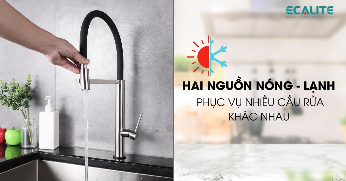 Ngoài tính thẩm mỹ cao, vòi rửa chén Ecalite mạ chrome còn rất tiện lợi trong quá trình sử dụng với 2 chế độ nước nóng-lạnh. Bạn có thể sử dụng vòi nước nóng để tráng sơ xoong, nồi,... dính dầu mỡ để rửa lại cho sạch hơn. Còn vòi lạnh lại hữu ích khi rửa rau quả, rửa tay, rửa chén,...hàng ngày.