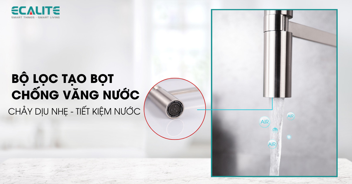 Dòng nước nhẹ nhàng nhờ bộ lọc tạo bọt